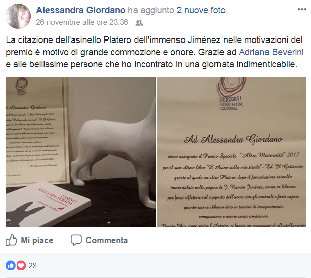 “Spesso l’asino arriva nelle nostre vite insieme al cambiamento, vi si inserisce scorrendo liscio come un orpello oliato dentro il suo perfetto pertugio. Sembra simboleggiare, con gli occhi di oggi, del nostro mondo non più legato al lavoro della terra, la possibilità di rinnovamento pur nel rispetto di quanto c’è da conservare.”