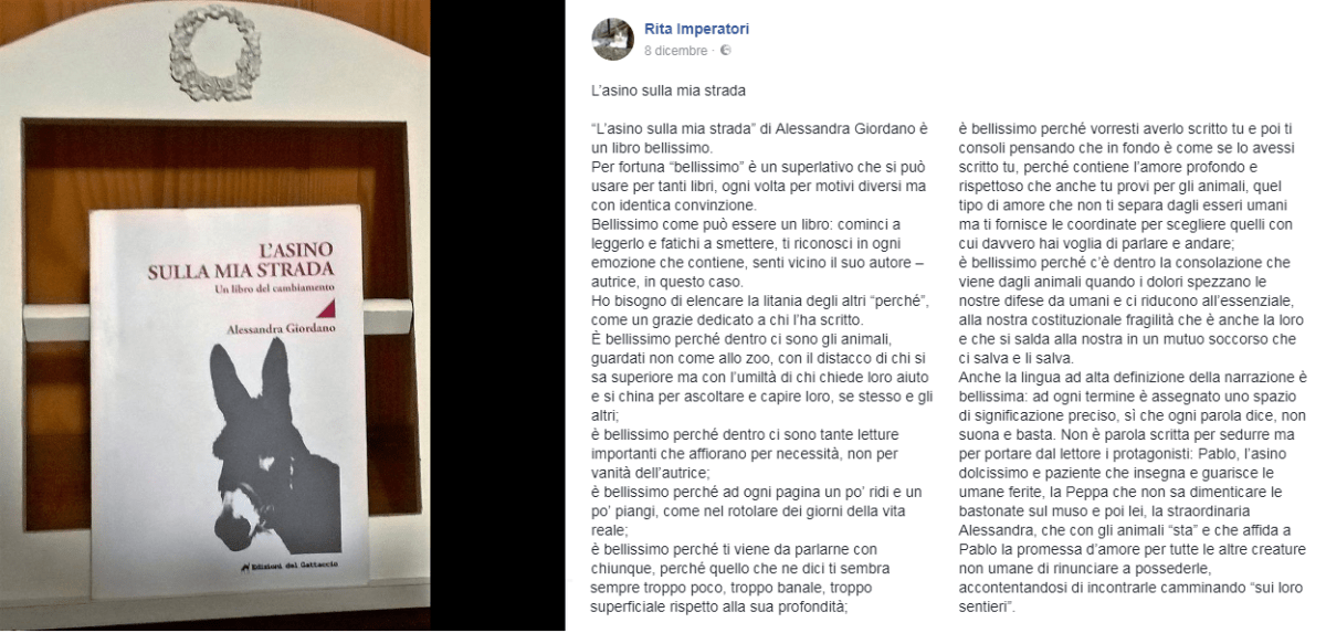 Rita Imperatori è una poetessa di rara bravura. Ha dedicato il suo tempo al mio libro e con queste parole su Facebook mi ha fatto un regalo che non ha misura.